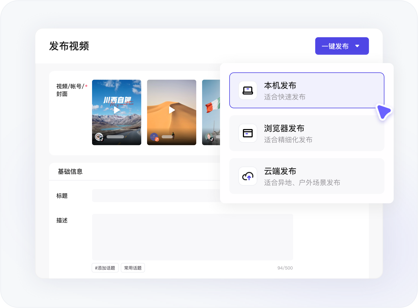 支持单视频多账号发布和多视频多账号发布