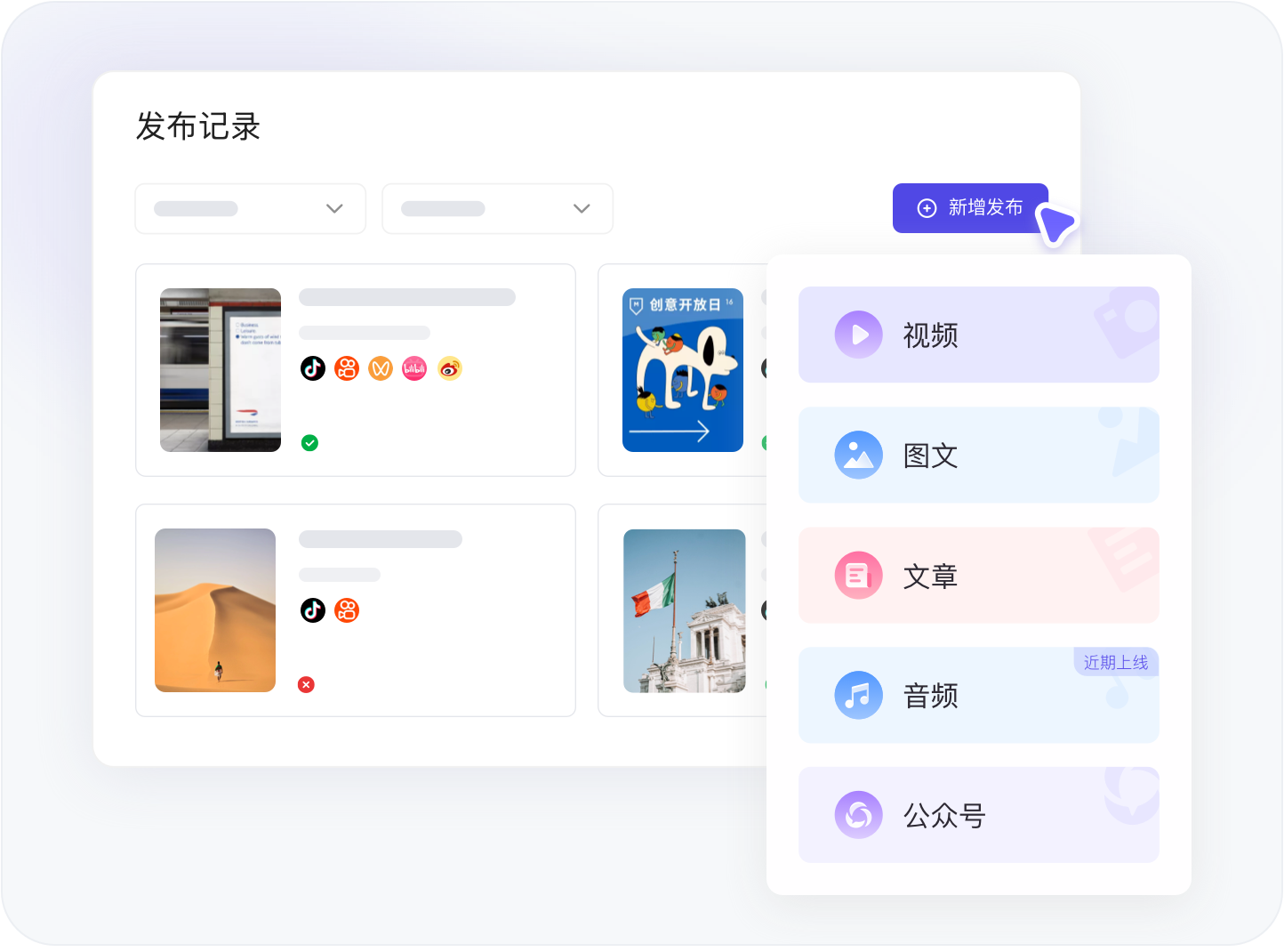 支持多平台视频、图文、文章一键发布