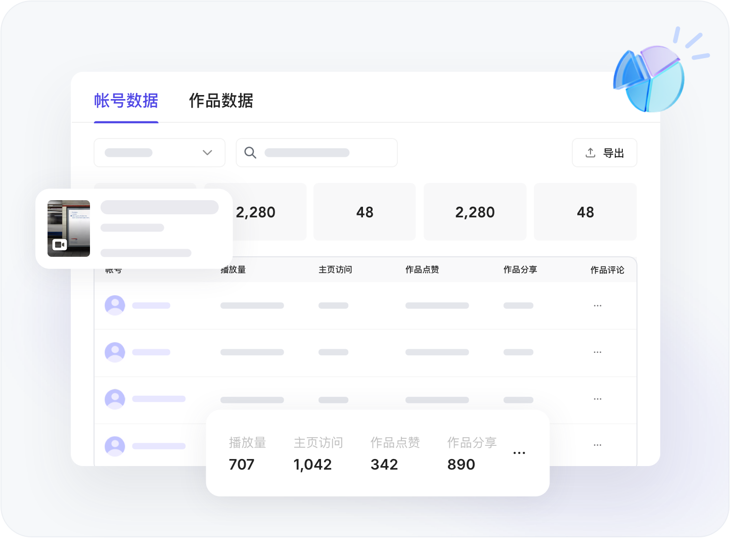 支持按账号数据汇总